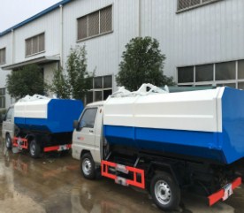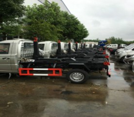 整裝待發(fā)的鉤臂垃圾車 20臺(tái)掛通垃圾車