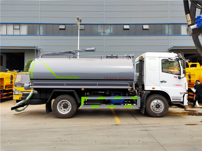 吸糞車專用部分由取力器、傳動軸、真空吸污泵、油水分離器、水氣分離器、防溢閥、壓力罐體、液壓部分,管網(wǎng)系統(tǒng)、吸污導(dǎo)管、自流閥、真空壓力表、視糞窗、洗手裝置等組成。罐體采用Q235碳鋼板制作,罐體封頭一次壓鑄成型,吸污導(dǎo)管可自吸自排,隨車配置大功率真空吸污泵。